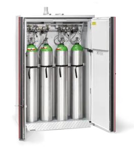 The storage of compressed gas cylinders is associated with specific risks that require special safety measures. DÜPERTHAL compressed gas cylinder storage offers certified protection in accordance with the latest safety standards. Our products are fire-retardant, shock-resistant and equipped with practical brackets that ensure stability and easy handling. Our systems can optionally be integrated with DÜPERTHAL connect to monitor important parameters such as pressure and temperature. Whether for medical gases, technical applications or laboratory supplies - DÜPERTHAL offers the optimal solution for the safe storage of compressed gas cylinders.