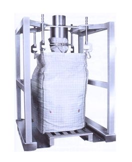 Der leere Big Bag wird in einen wahlweise höhenverstellbaren Tragrahmen in die Schlaufenhaken eingehängt.